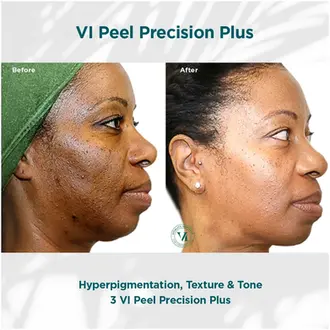 The VI Peel is a medium-depth chemical peel that exfoliates the top layer of skin, stimulating the production of new skin cells. This treatment uses a unique blend of acids and vitamins, suitable for all skin types.